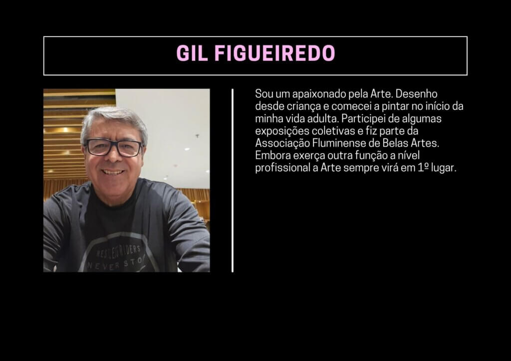 Sou um apaixonado pela Arte. Desenho desde criança e comecei a pintar no início da minha vida adulta. Participei de algumas exposições coletivas e fiz parte da Associação Fluminense de Belas Artes. Embora exerça outra função a nível profissional a Arte sempre virá em 1º lugar.