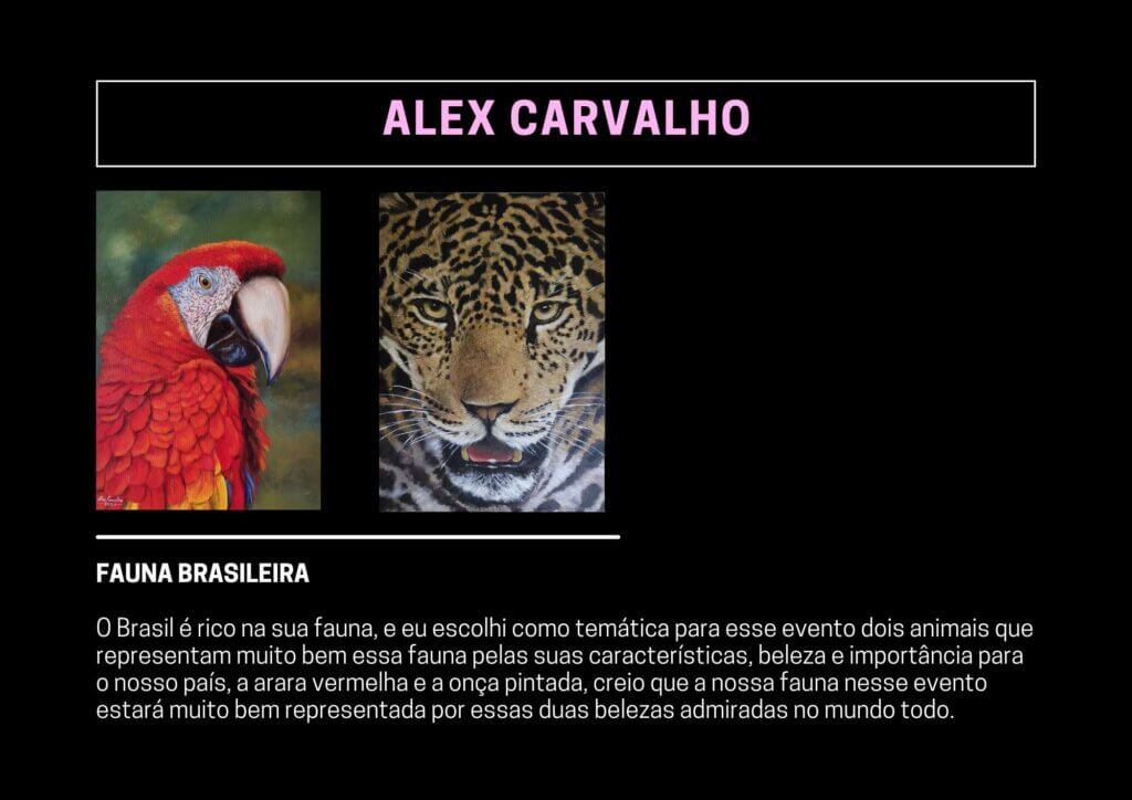 O Brasil é rico na sua fauna, e eu escolhi como temática para esse evento dois animais que representam muito bem essa fauna pelas suas características, beleza e importância para o nosso país, a arara vermelha e a onça pintada, creio que a nossa fauna nesse evento estará muito bem representada por essas duas belezas admiradas no mundo todo.