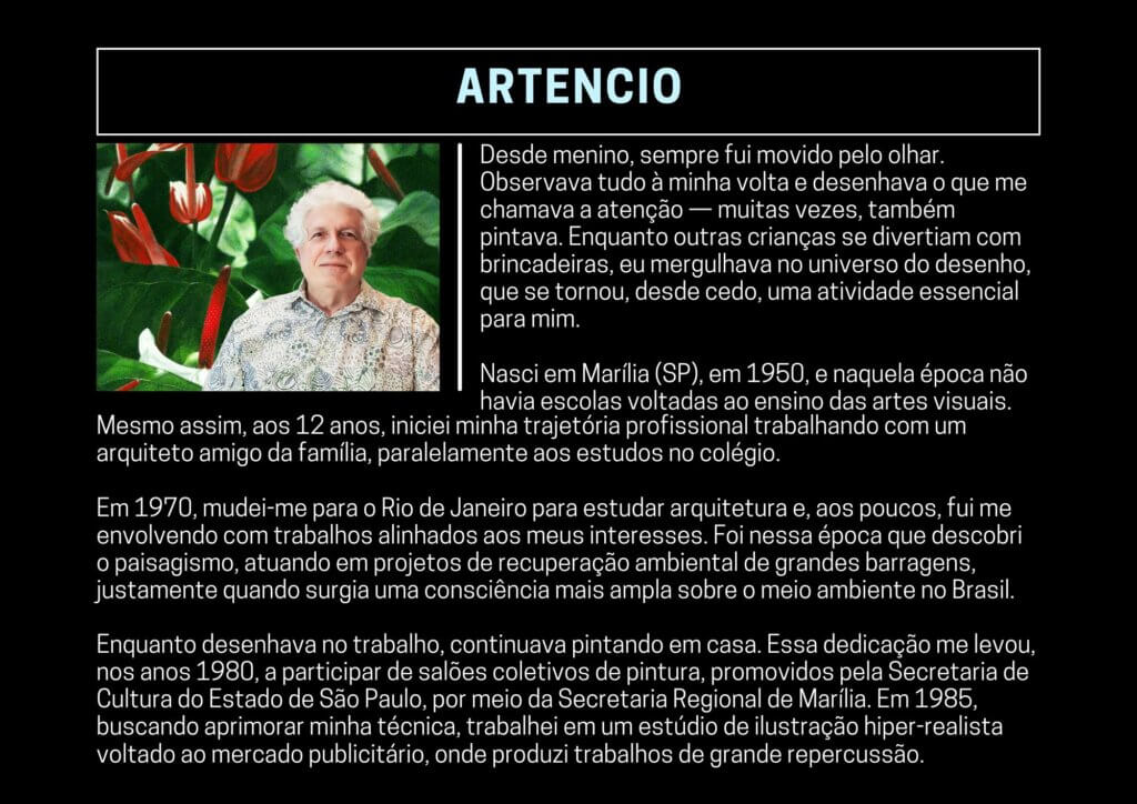 Desde menino, sempre fui movido pelo olhar. Observava tudo à minha volta e desenhava o que me chamava a atenção — muitas vezes, também pintava. Enquanto outras crianças se divertiam com brincadeiras, eu mergulhava no universo do desenho, que se tornou, desde cedo, uma atividade essencial para mim.